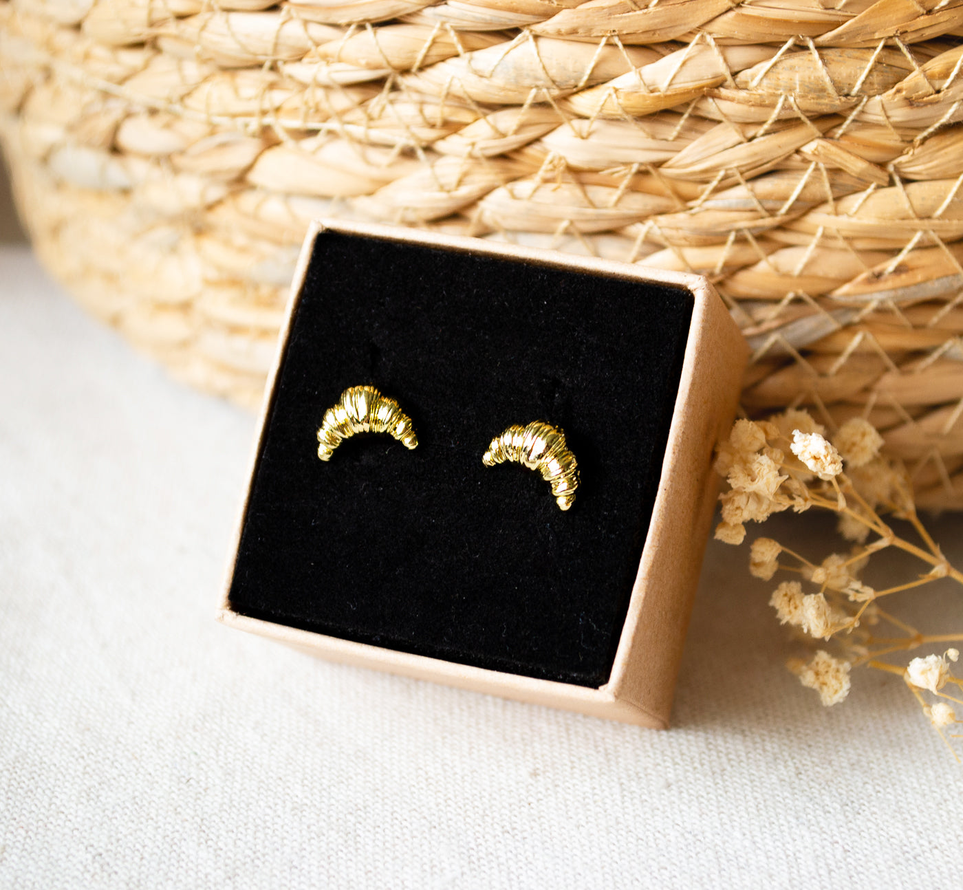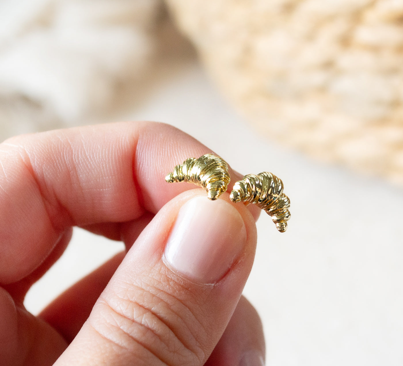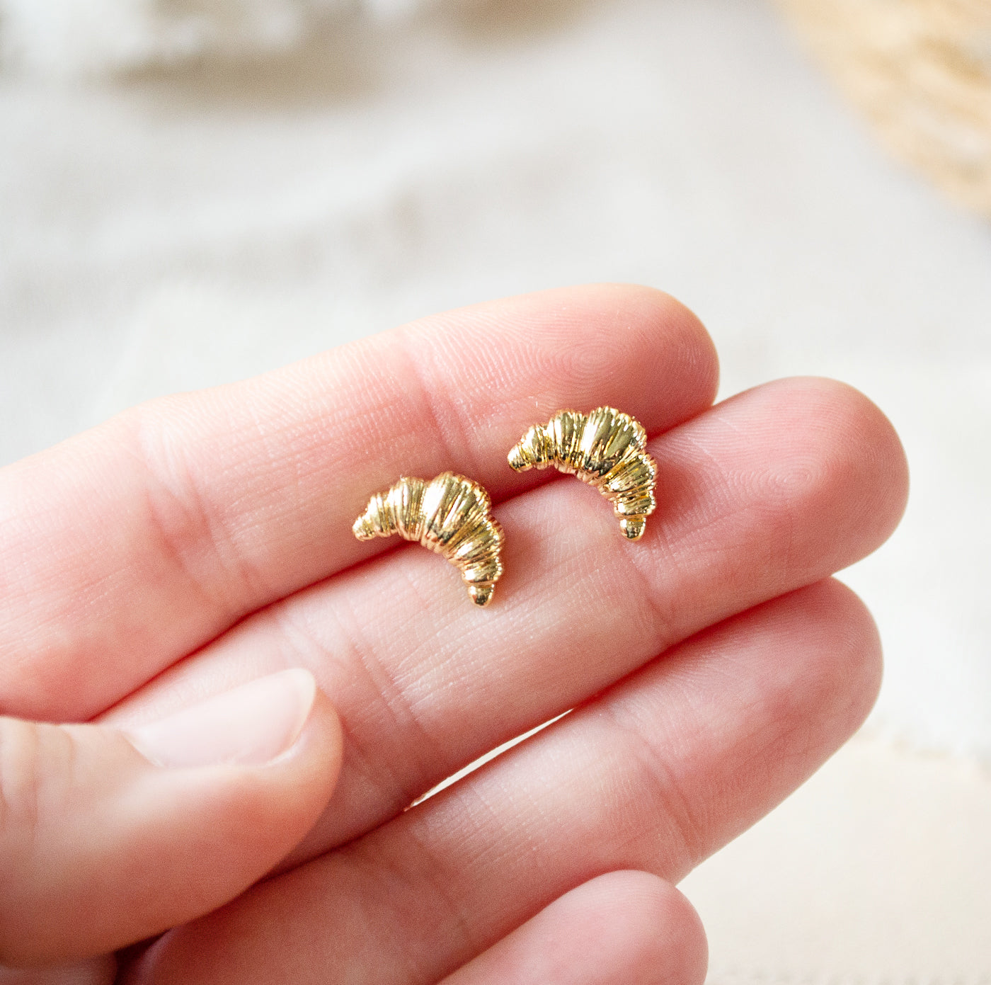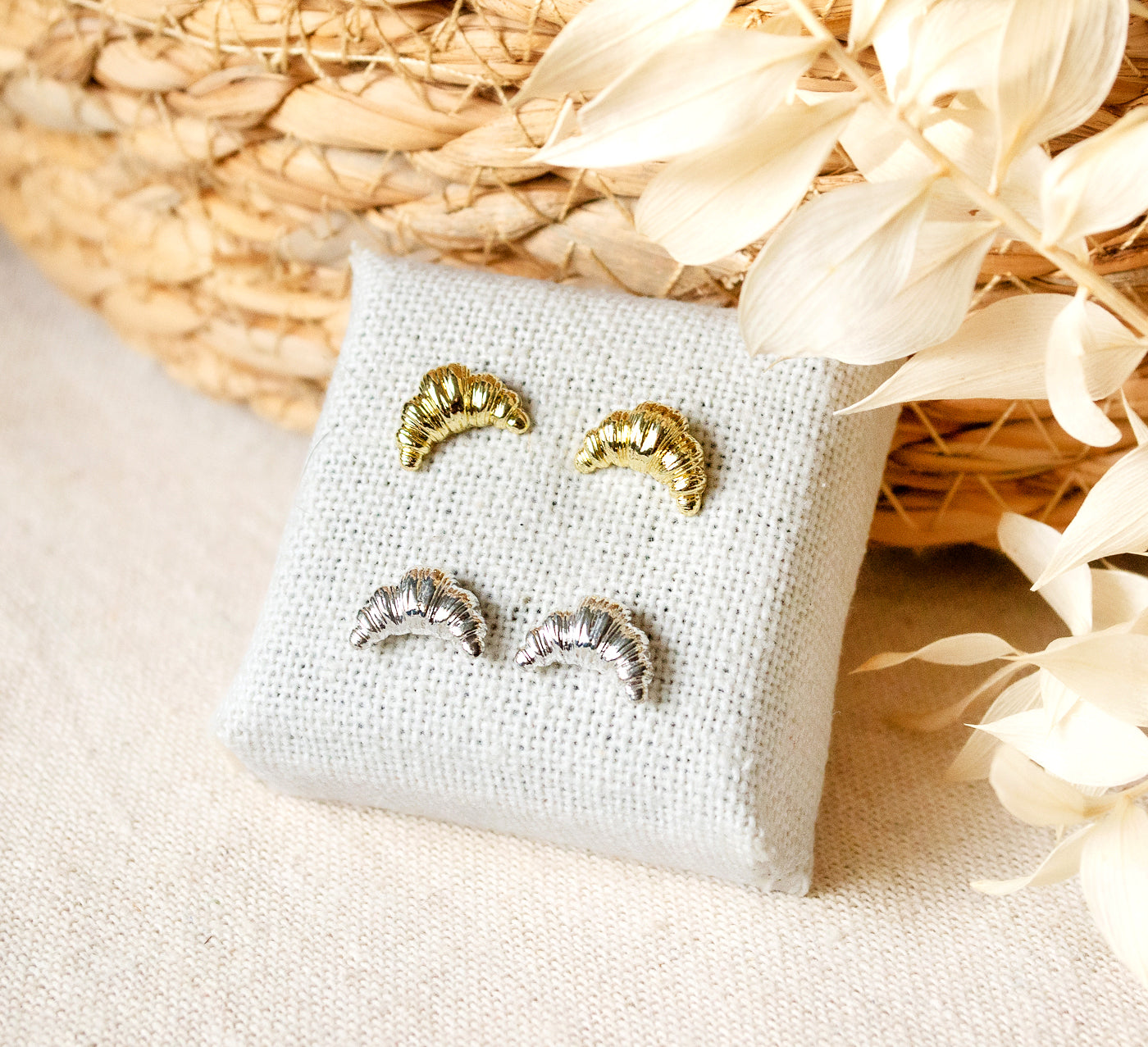 Diese zarten Croissant-Ohrstecker sind das perfekte Accessoire für alle, die das süße Leben lieben. Ob goldfarben oder silberfarben – sie bringen einen charmanten, verspielten Akzent in jeden Look.