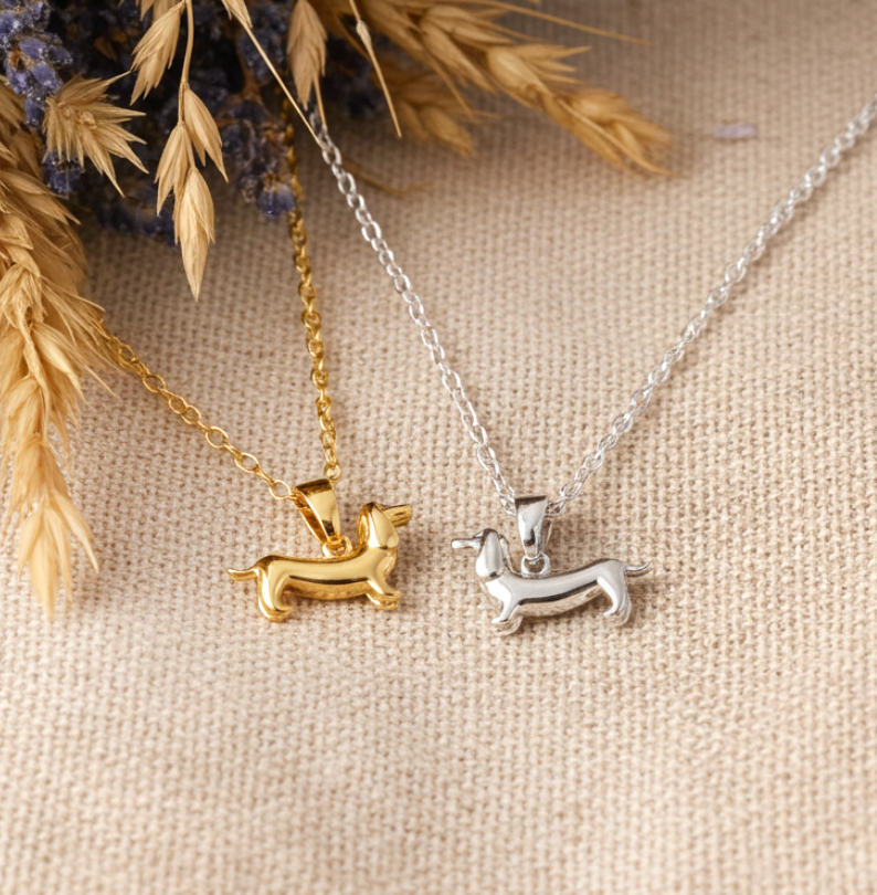Süße Dackel Hundekette in Goldfarben oder Silberfarben.