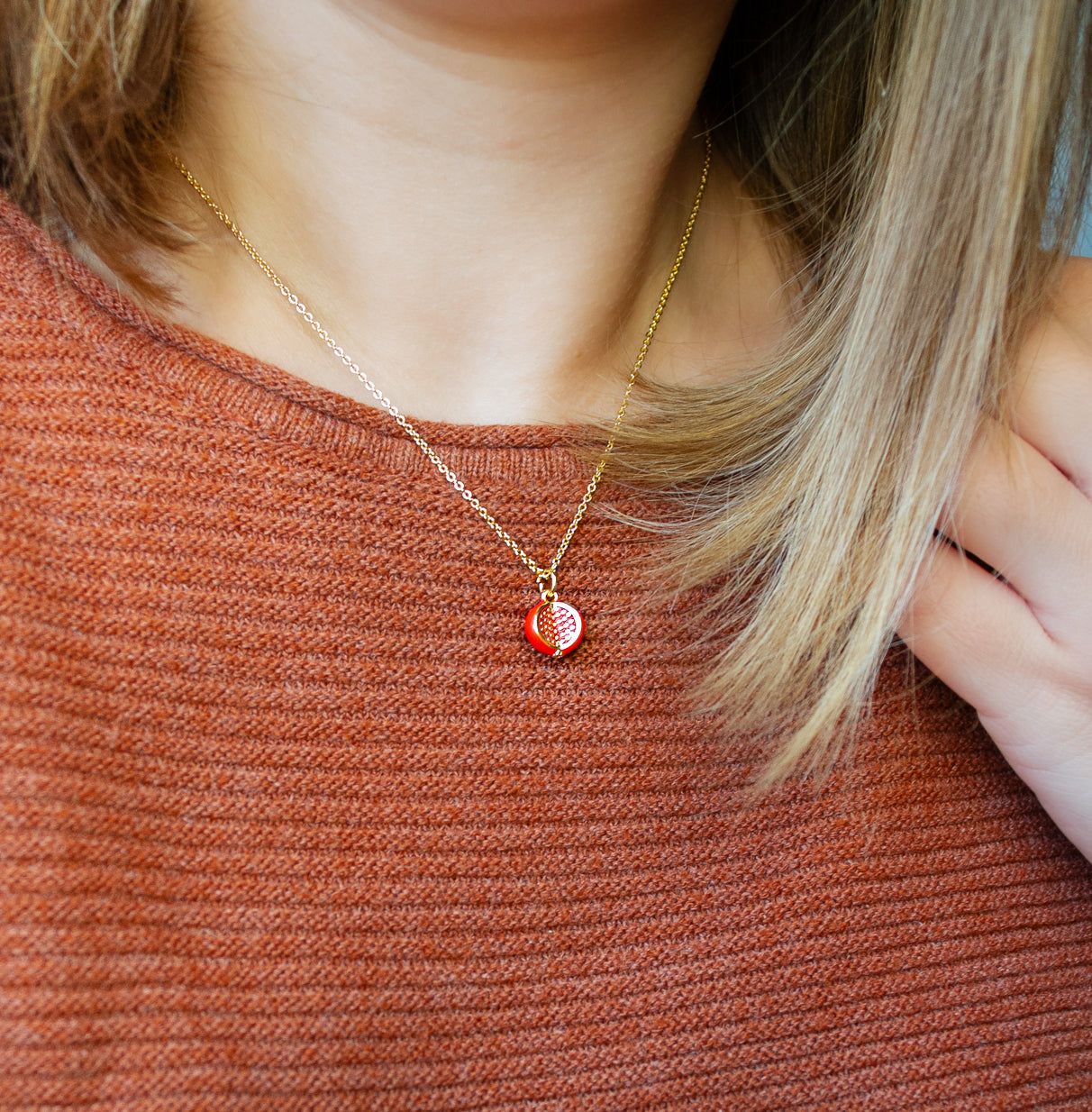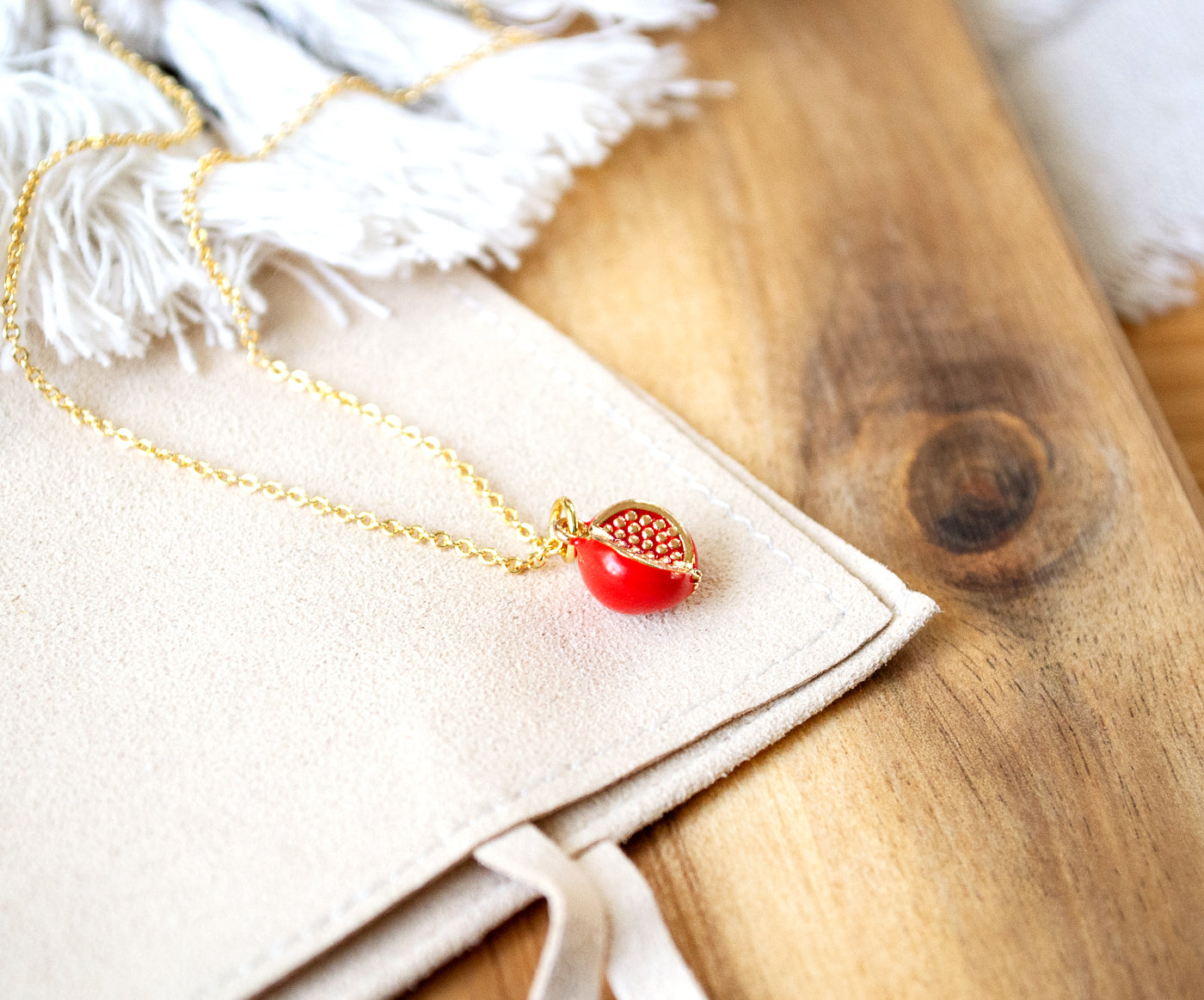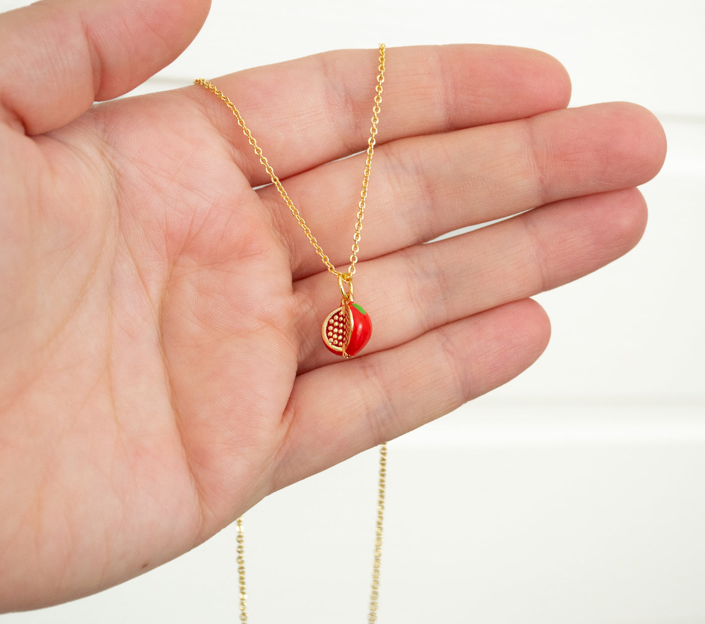 Süße Granatapfelkette in Goldfarben.