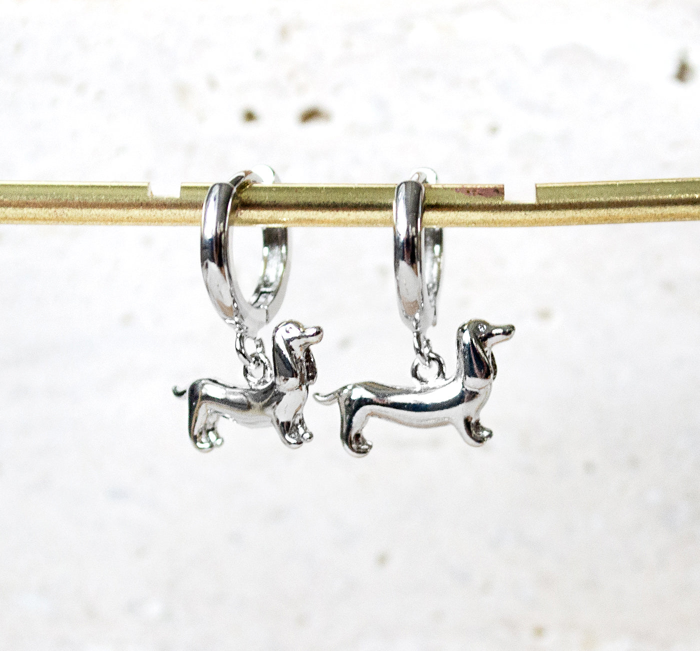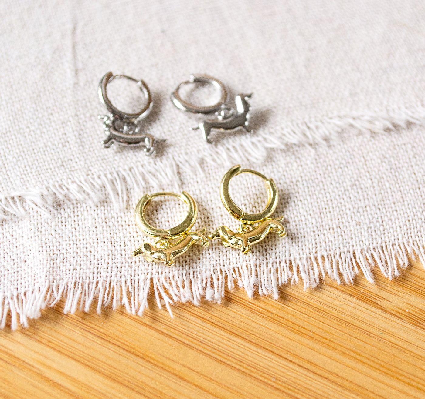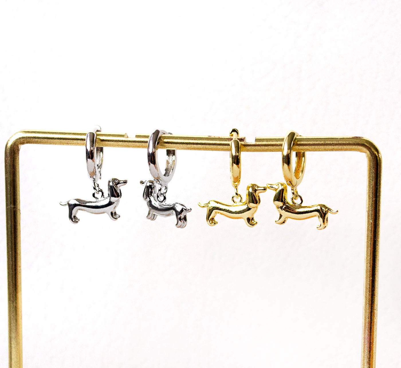Süße Dackel Creolen aus Edelstahl in der Farbe Gold oder Silber.