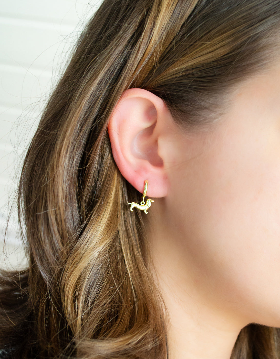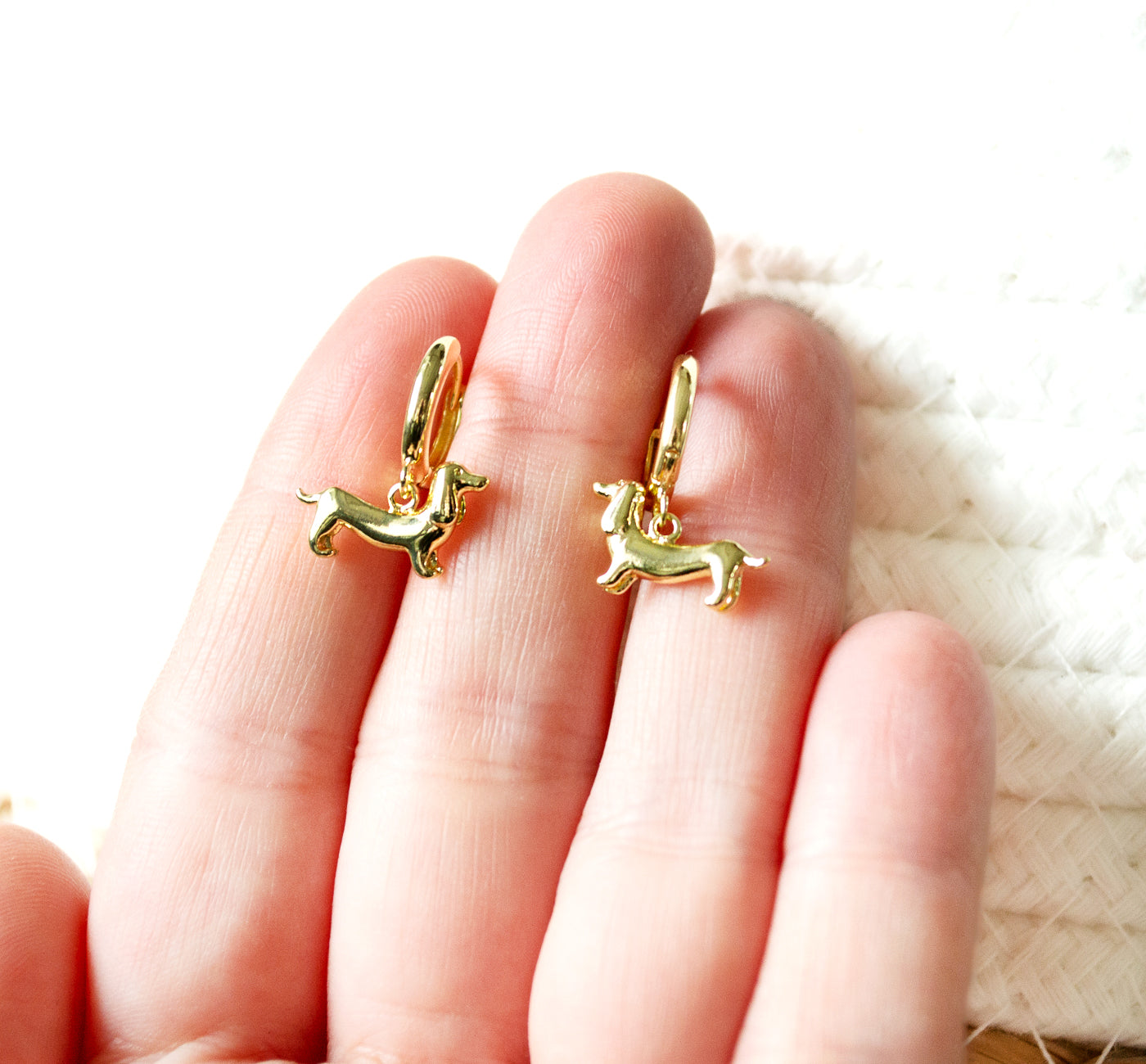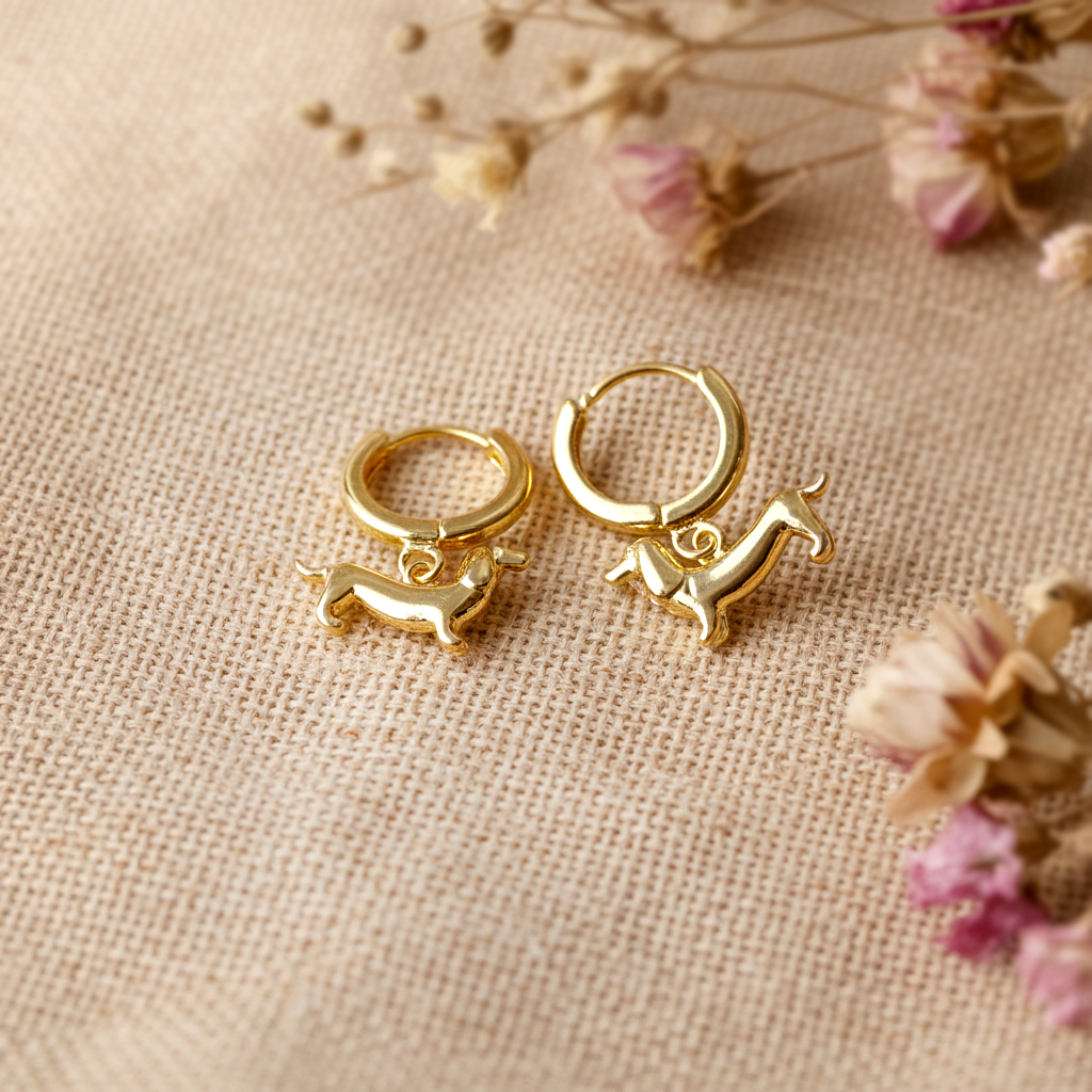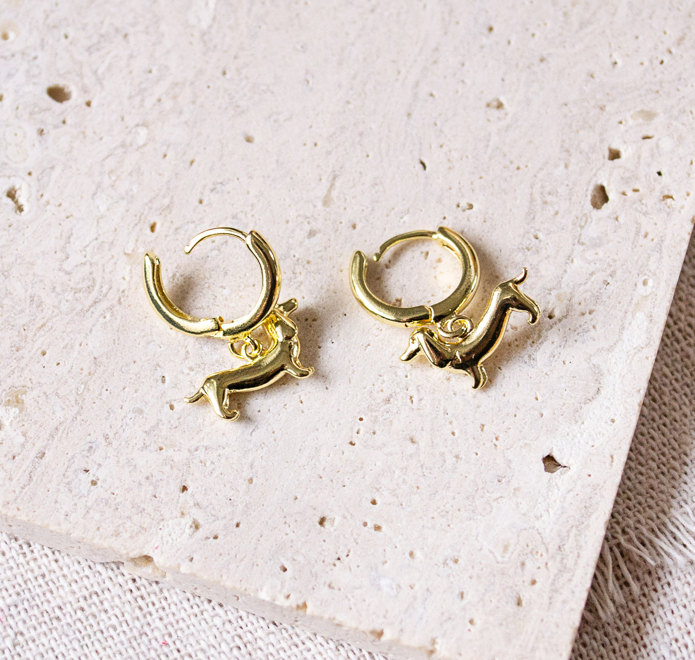 Süße Dackel Creolen aus Edelstahl in der Farbe Gold oder Silber.