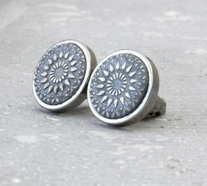 Ohrstecker - Mandala Bohemian Edelstahl Silber Grau Ohrringe