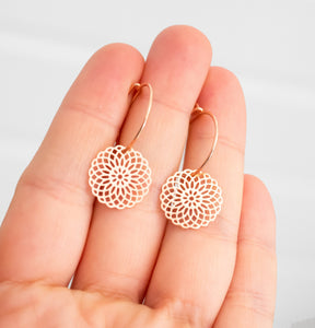 Filigrane Creolen mit Mandala Anhängern - Silberfarben / Rose Goldfarben - Leichte Ohrringe - Boho - Scheiben