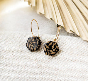 Hexagon Polymer Clay Ohrringe - gemusterten Anhängern - Gold Leichte Ohrringe - Kreolen