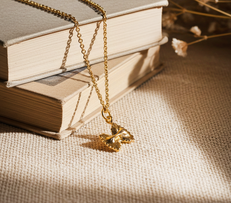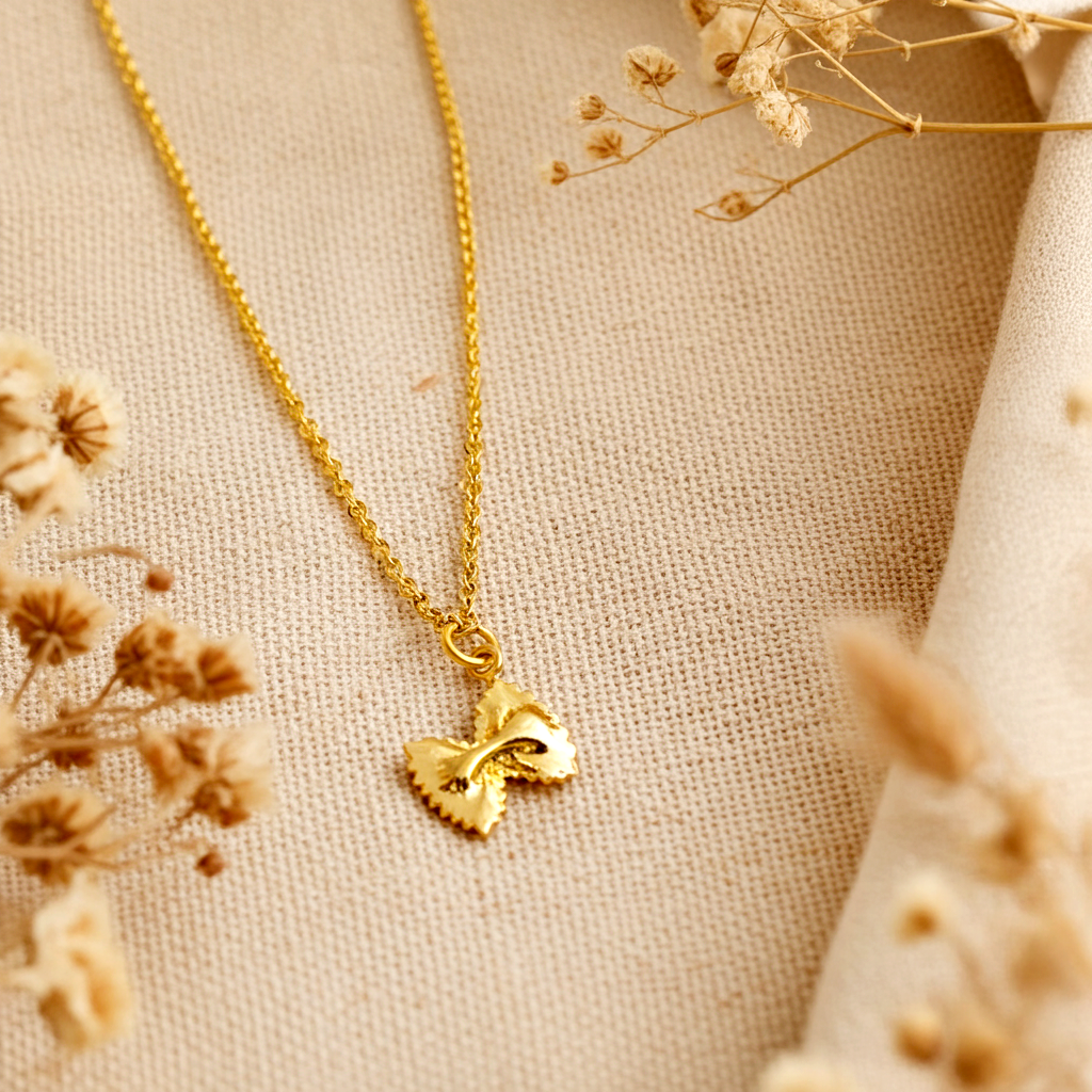 Niedliche kurze Kette mit einem Farfallenudel-Anhänger.