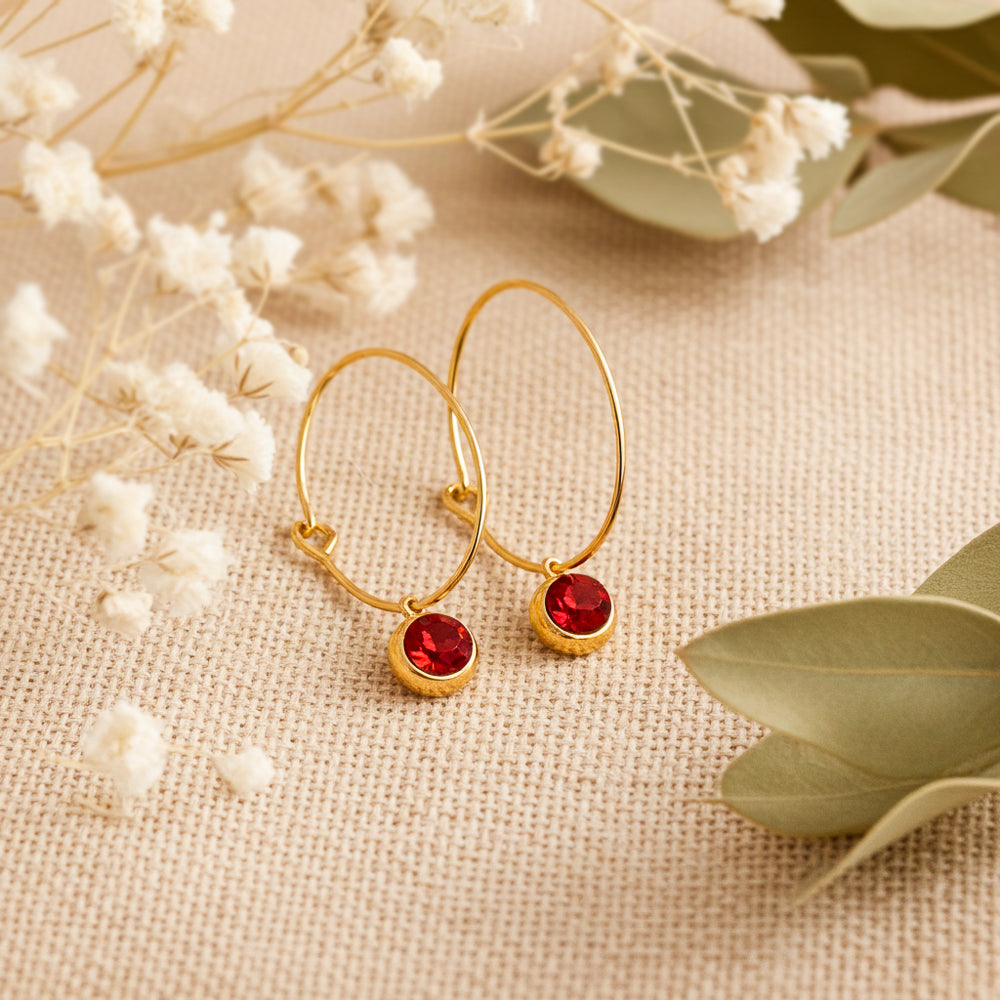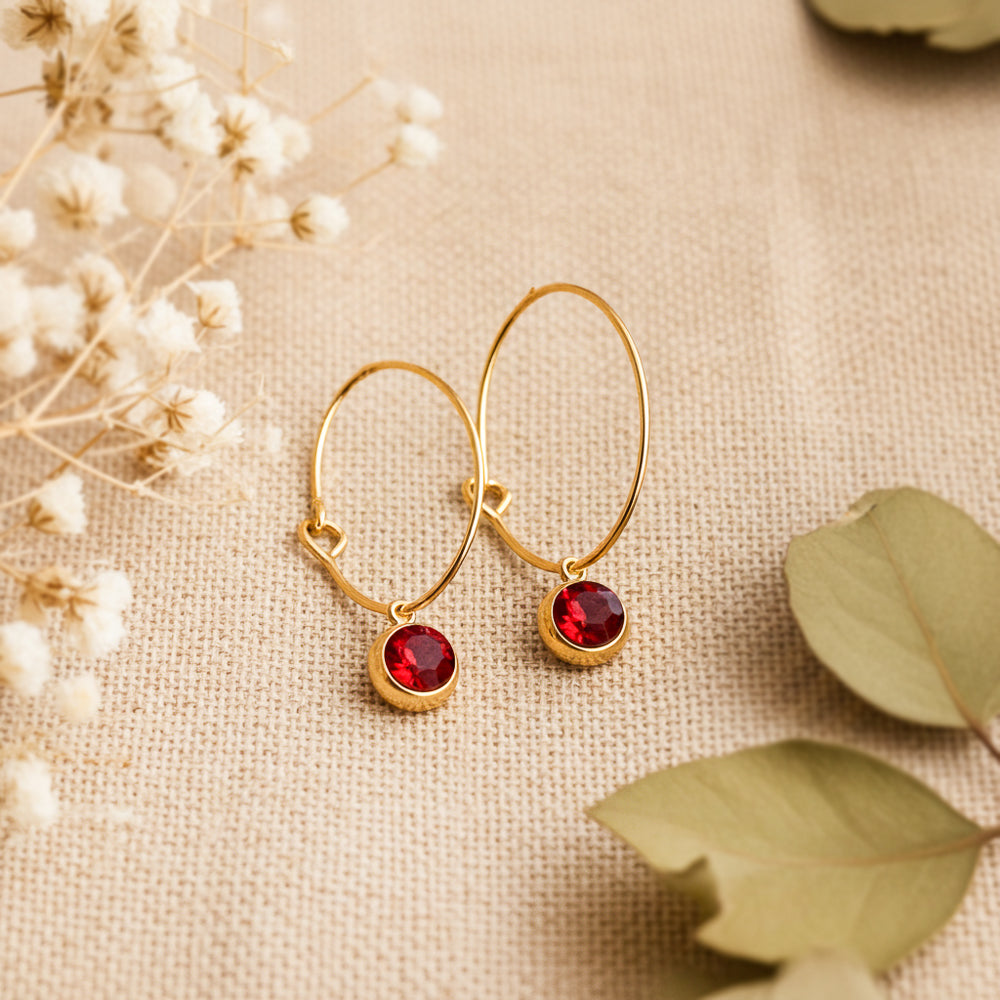 Filigrane Creolen Ohrhänger mit Glasstein-anhänger.