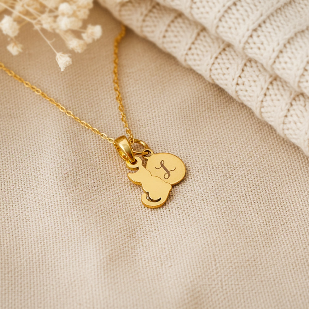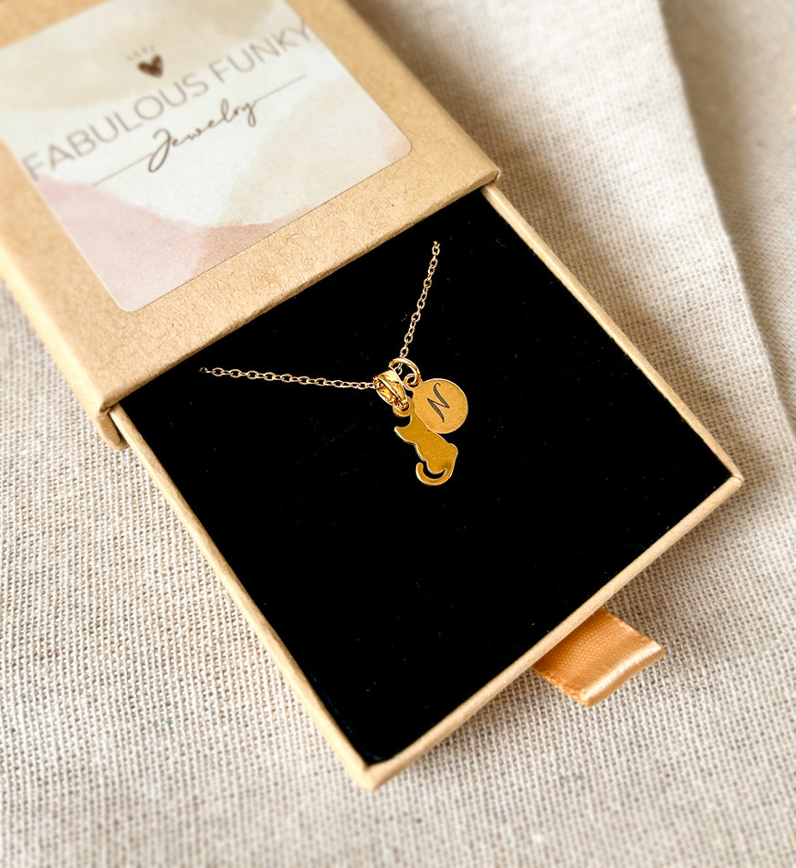 Die Kette wird mit einem liebevoll gravierten Namens- und Katzenanhänger geliefert.